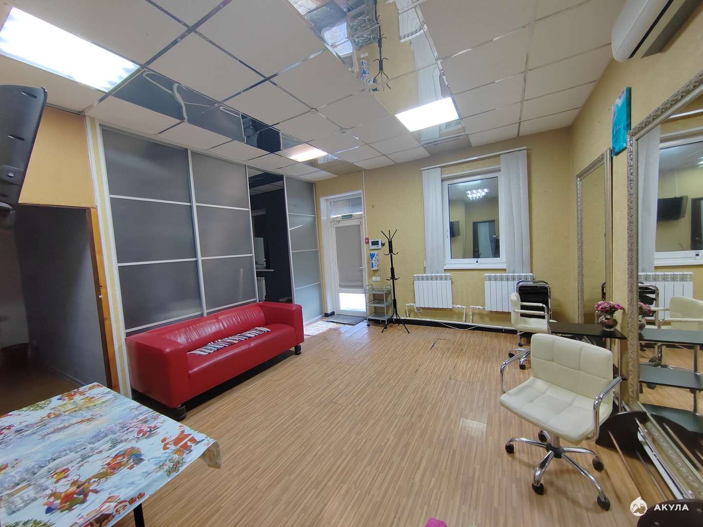 В помещении косметический ремонт, все удобства (центральная вода, канализация, свет, газ прям на задней стенке здания при желании можно подключить). Своё автономное отопление (электрокотел), сплит-система, водонагреватель, заведен высокоскоростной интернет, установлен видео домофон, на окнах и на двери электрические жалюзи.