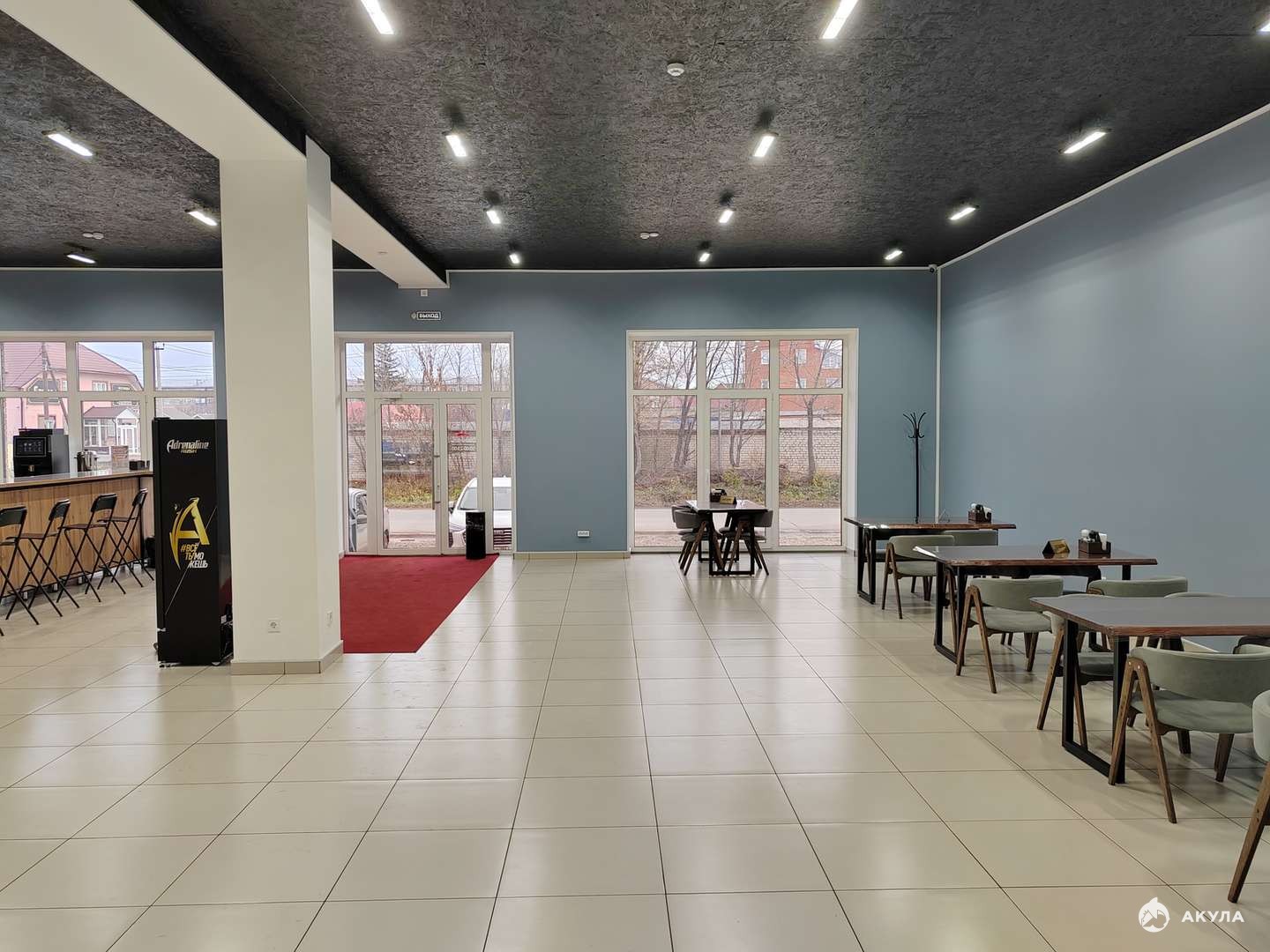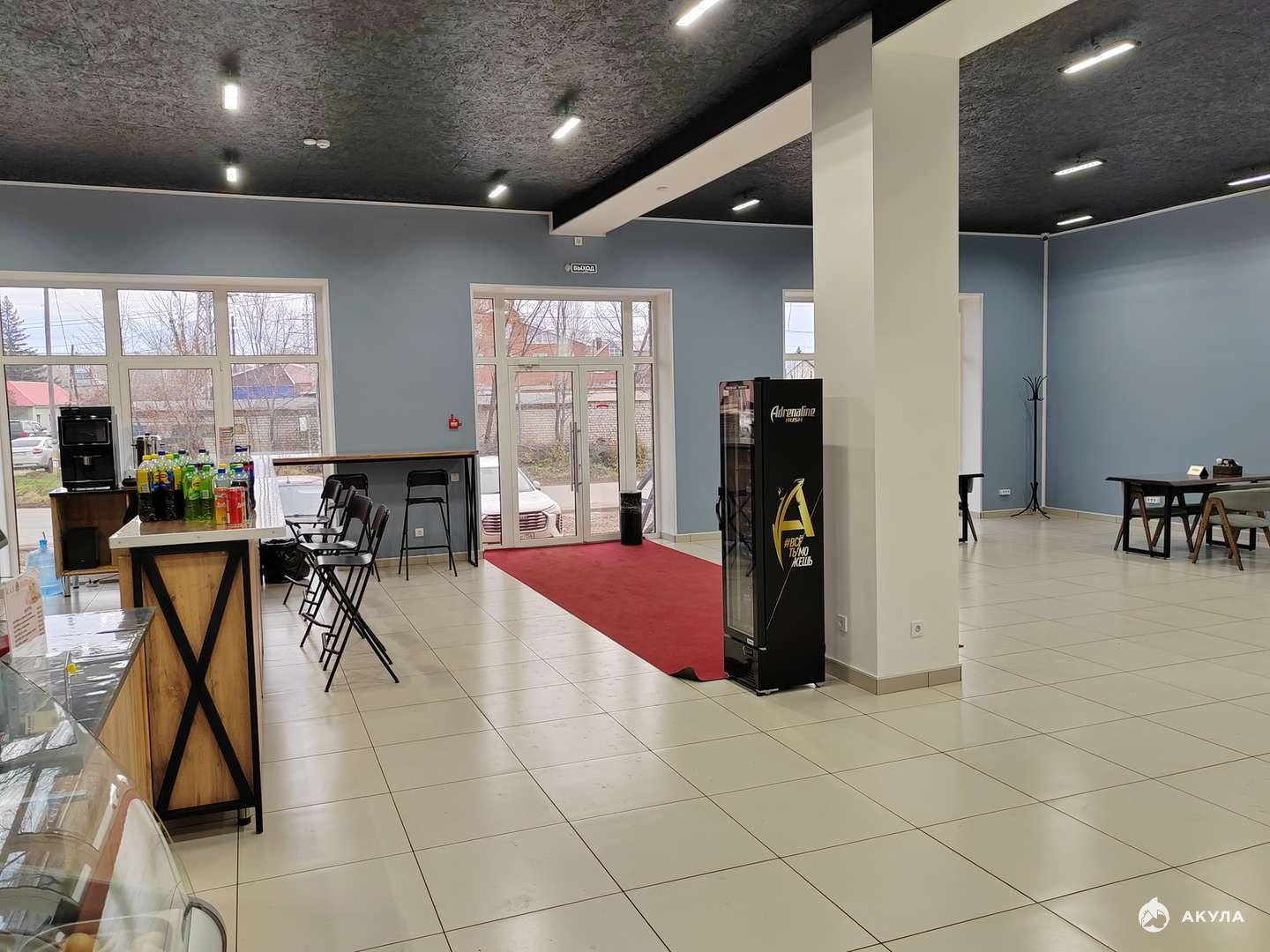 Здание состоит из 2х этажей один из которых подземный. Высота потолков каждого этажа почти по 4 метра.