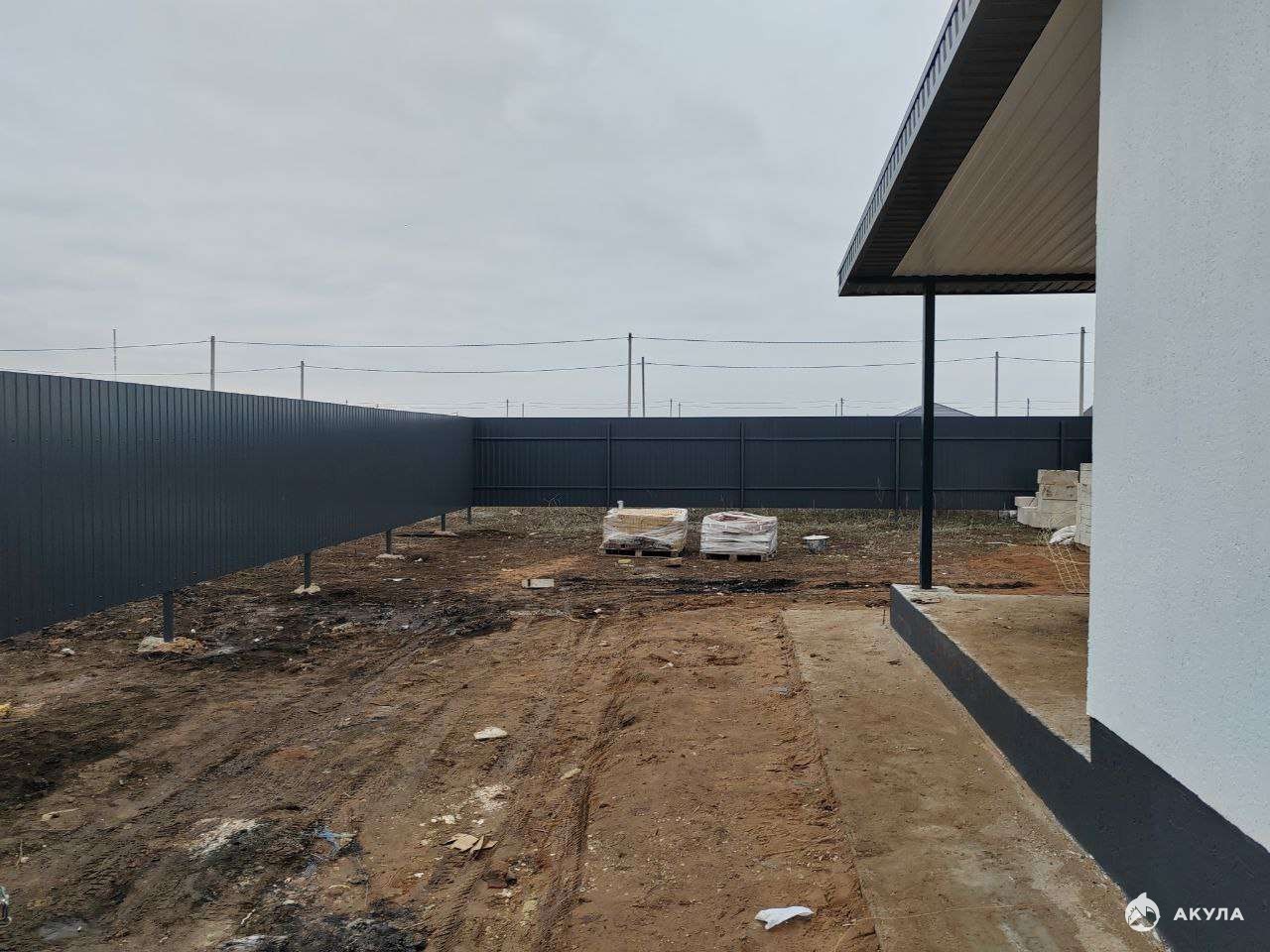 Вокруг дома залита отмостка, также залита входная и парковочная зона.