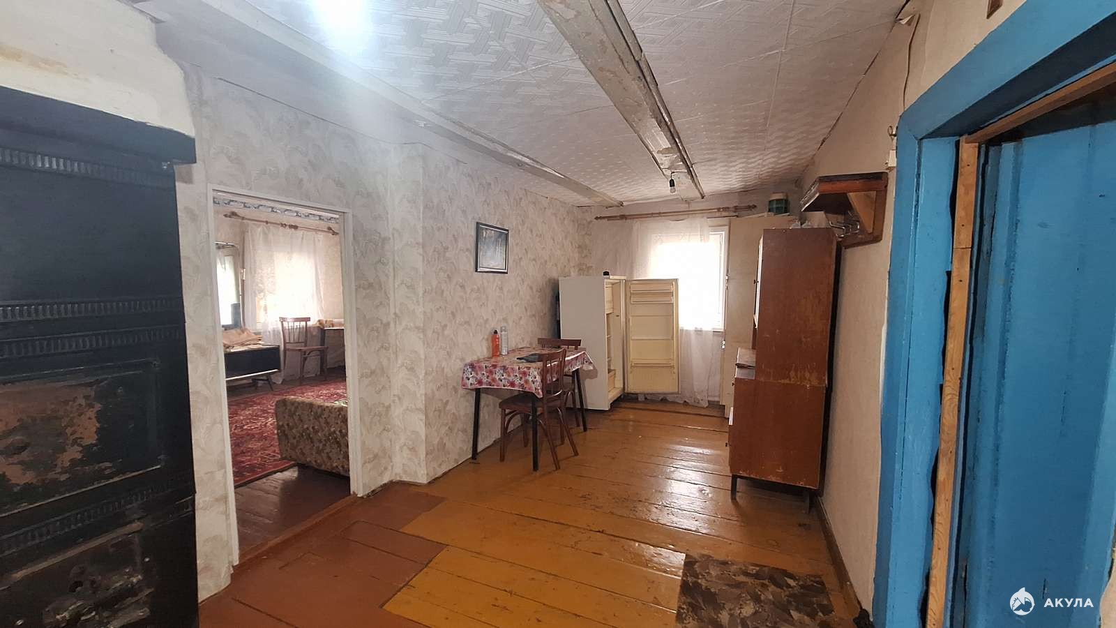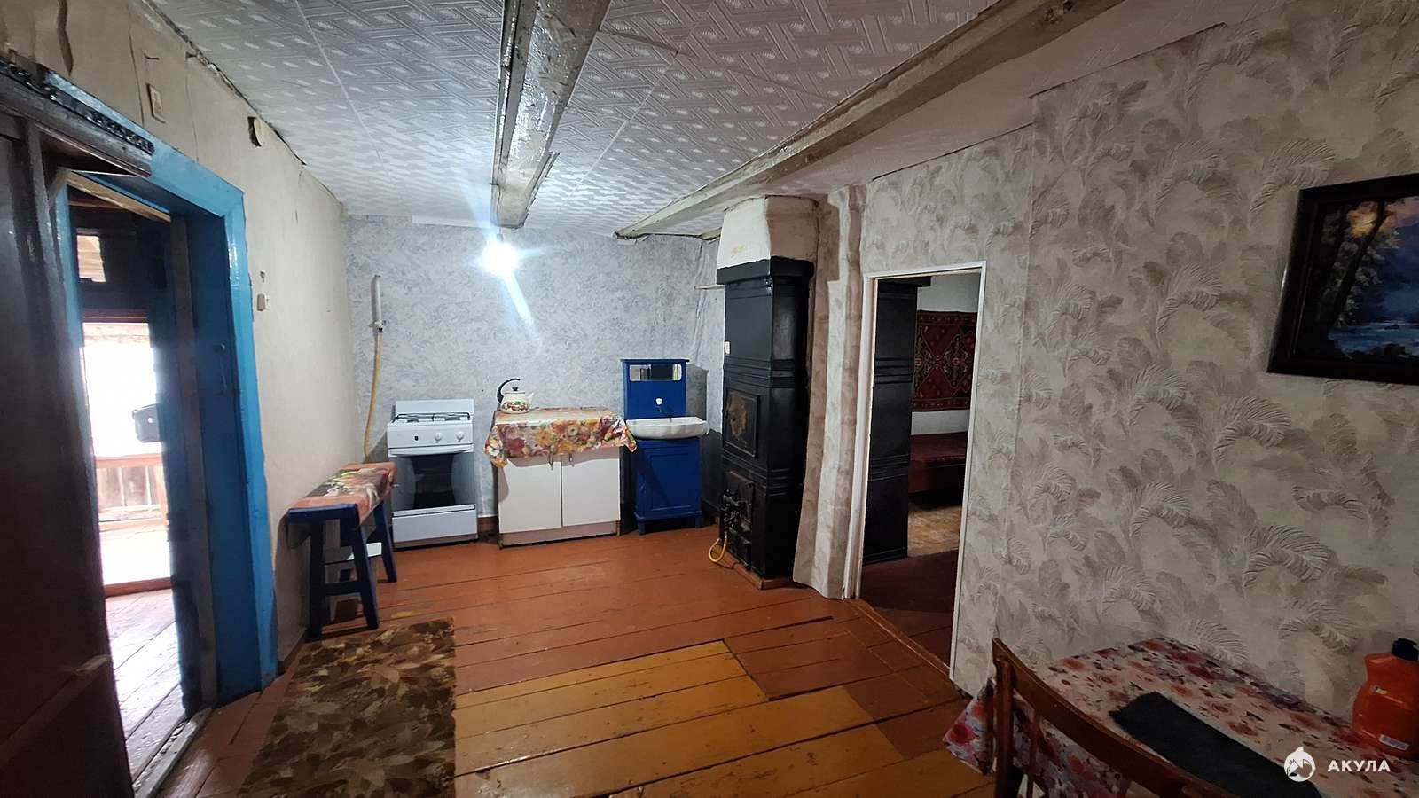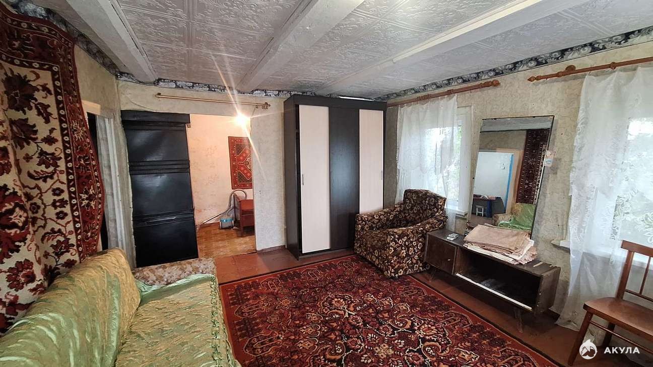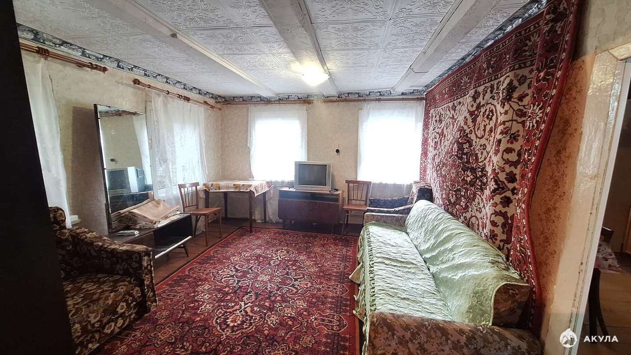 Бревенчатый, окна полностью пластик, отопление газовое. Свет, газ в доме есть. Планировка состоит из холодных сеней с кладовой под хозяйственные нужды, кухня, далее идёт зал и изолированная спальня. Воду можно завести в дом без проблем прям напротив дома есть колодец, от которого без проблем можно завести в дом воду.