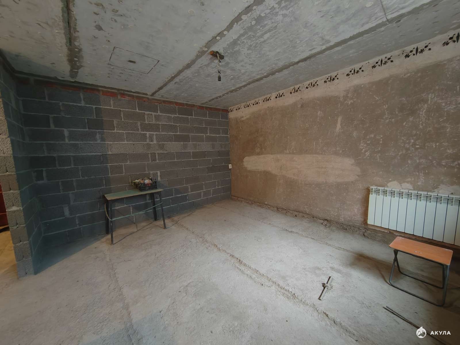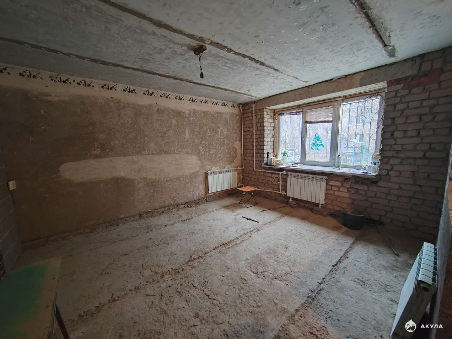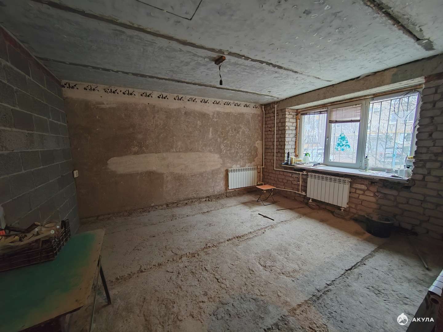 Квартира полностью подготовлена для ремонта. Отбита вся старая штукатурка, выкинули выкинули деревянные полы, разобрали старые перегородки, сняты старые потолки.