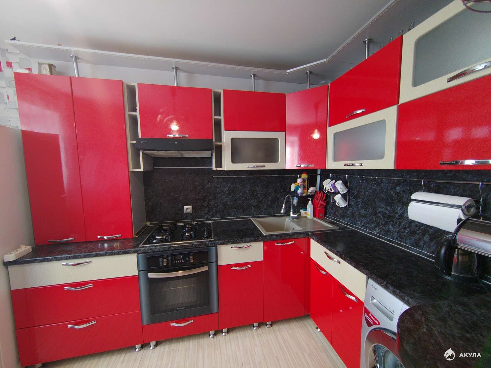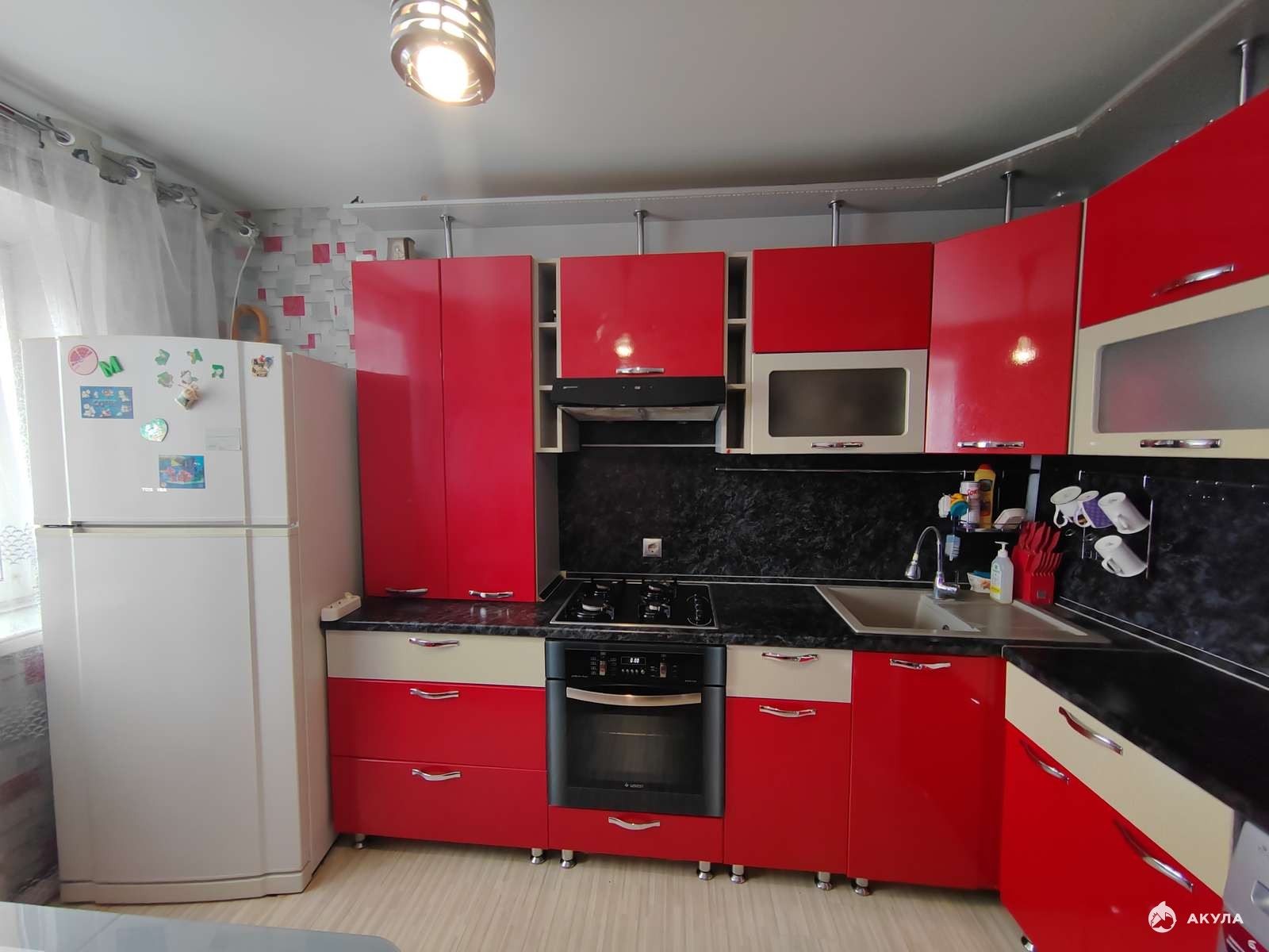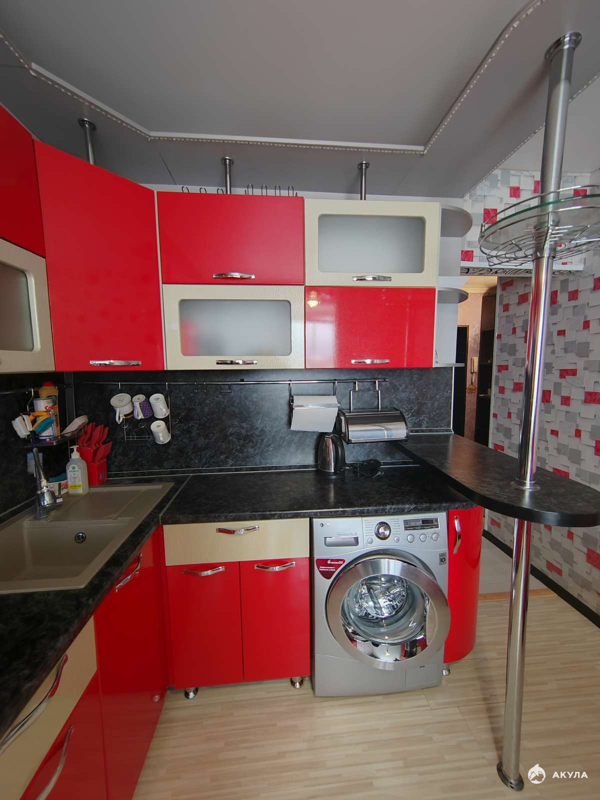 Новым собственникам остаётся и входит в стоимость современный кухонный гарнитур с встроенной бытовой техникой : варочная панель, вытяжка, духовой шкаф. Так же на кухне оставляют кухонный стол и угловой диванчик (превращаеться в полноценное спальное место для двоих). В прихожей и в большой комнате остаются многофункциональные шкафы-купе.