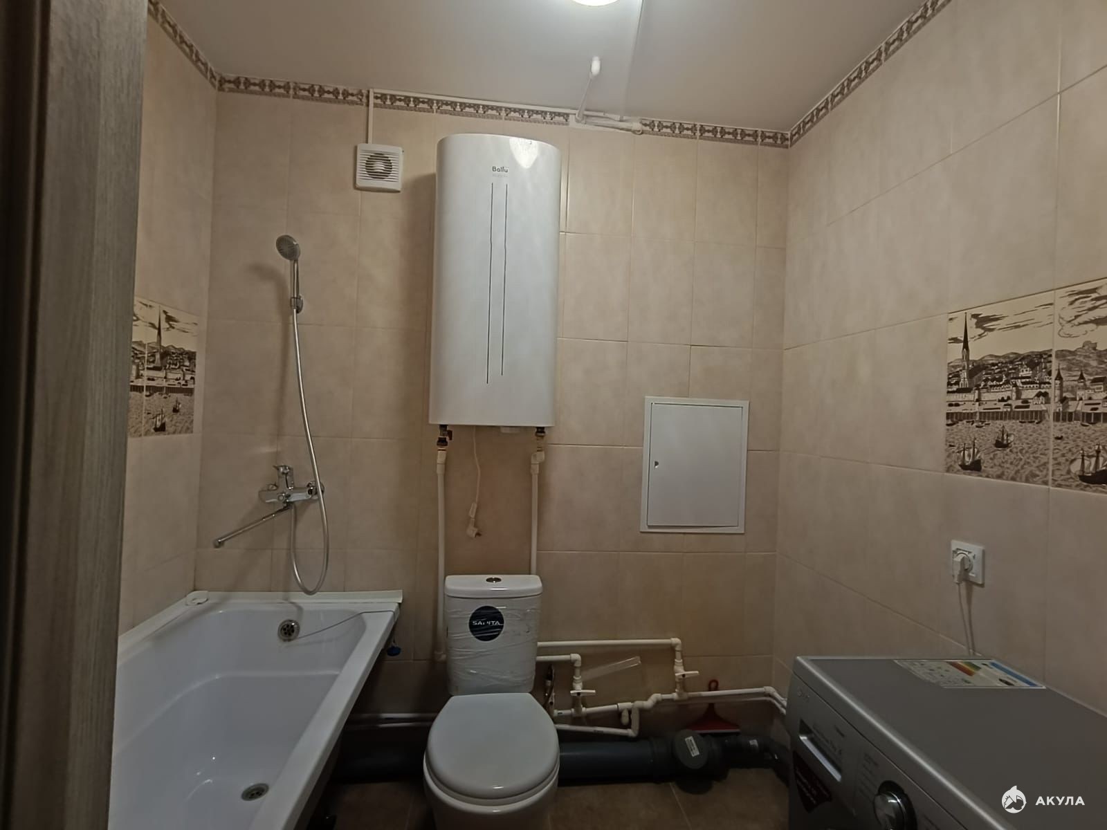 Просторный совмещенный санузел с кафельной отделкой