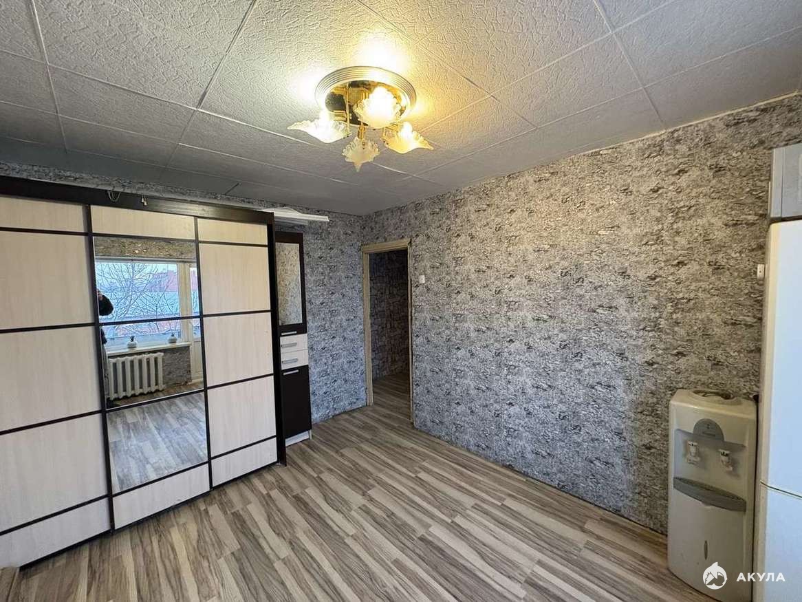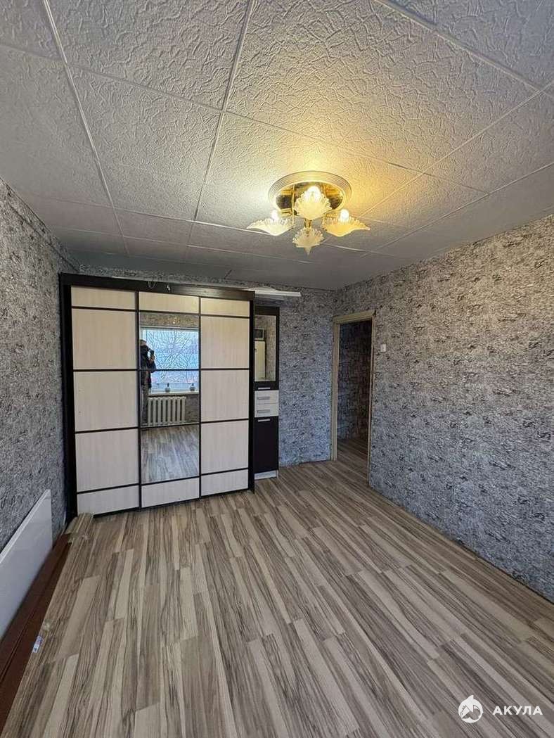 В квартире остается современный шкаф купе, и кухонный гарнитур.