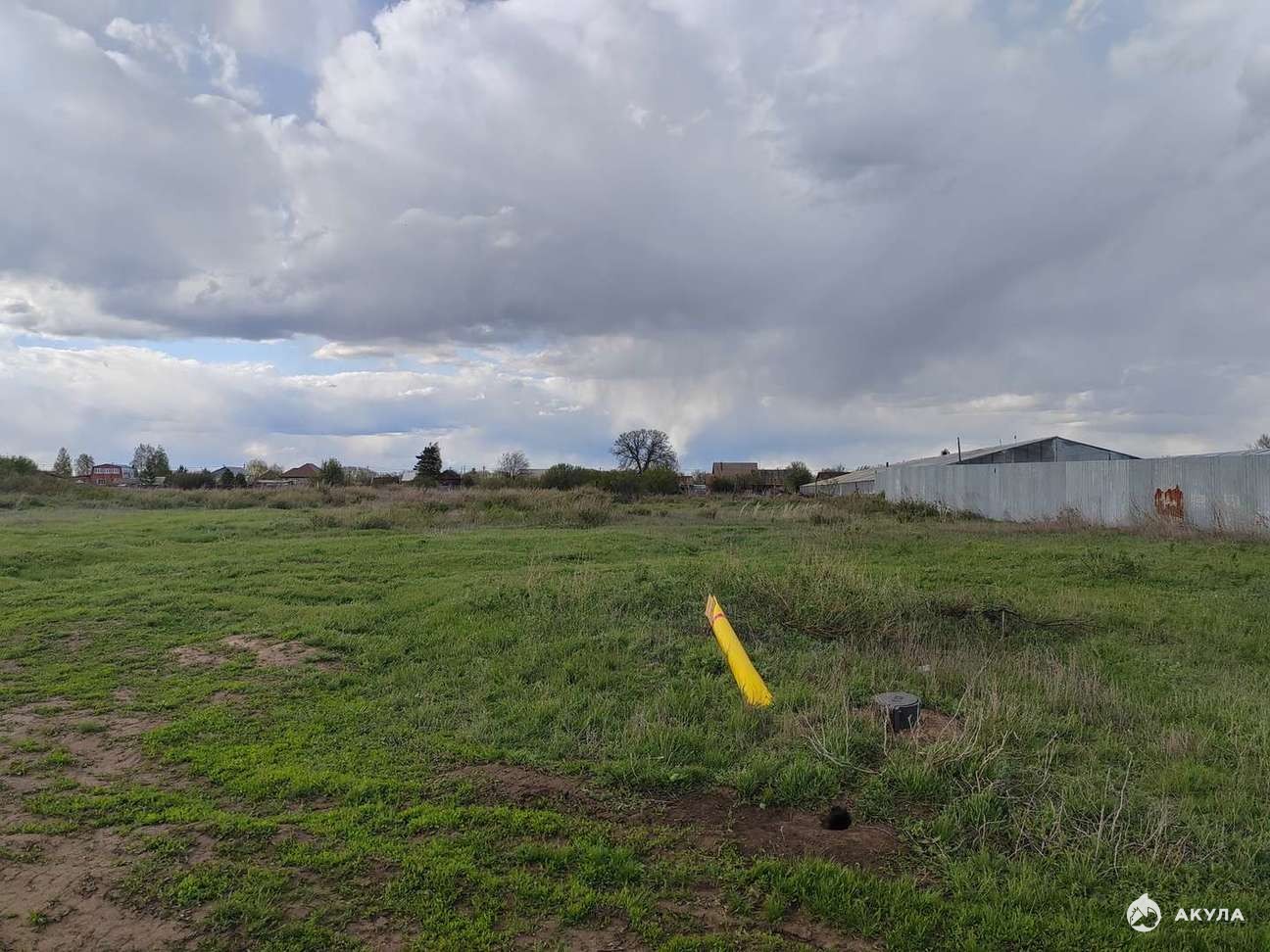 меньшеpбольшеСвет и газ на границе участка. С правой стороны уже стоит забор от соседа.