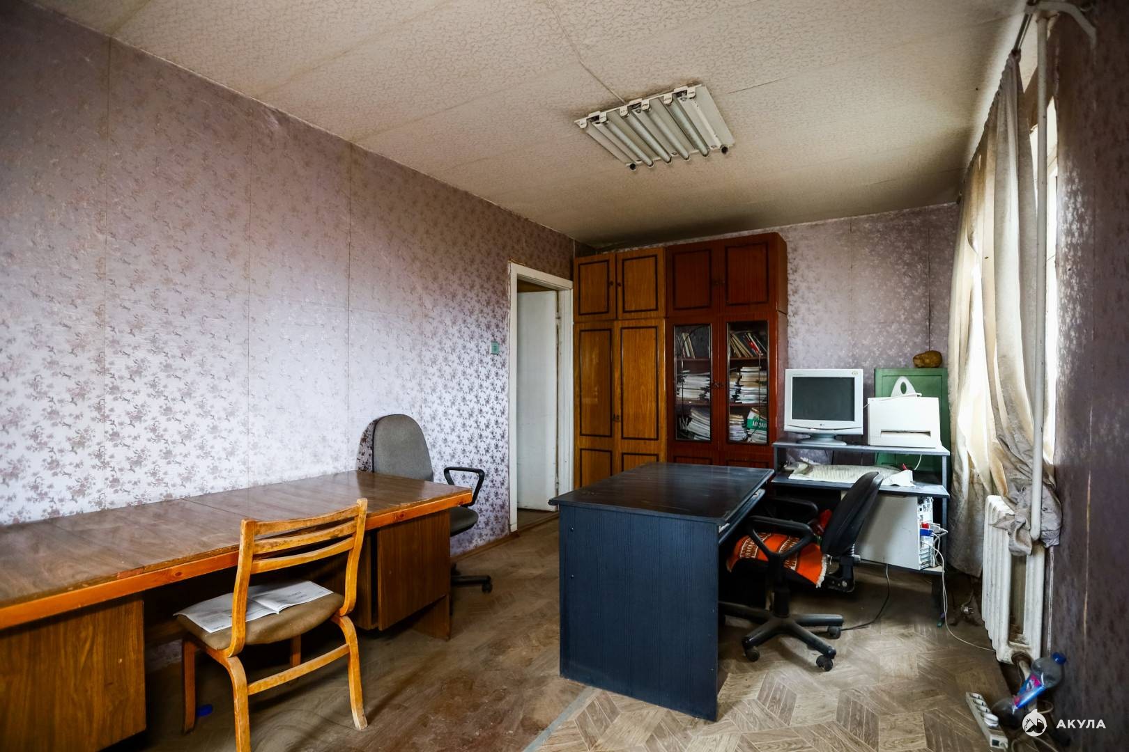 Состояние помещения требует ремонта. В одной из комнат можно разместить ресепшн или приемную.