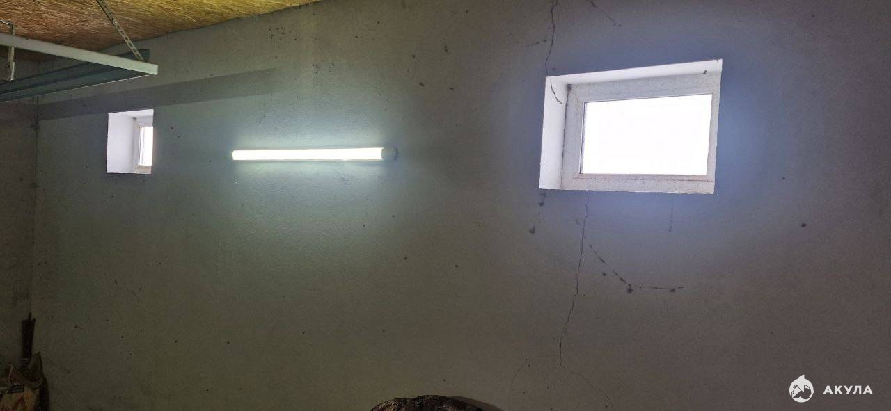 -На участке кухня-гараж 50м2. оштукатуренный снаружи и внутри.пол залит бетоном. розетки 220 и 380 вольт.
