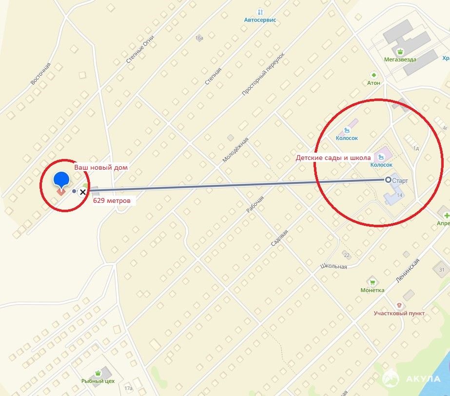 До ближайших детских садиков и школы 600 метров