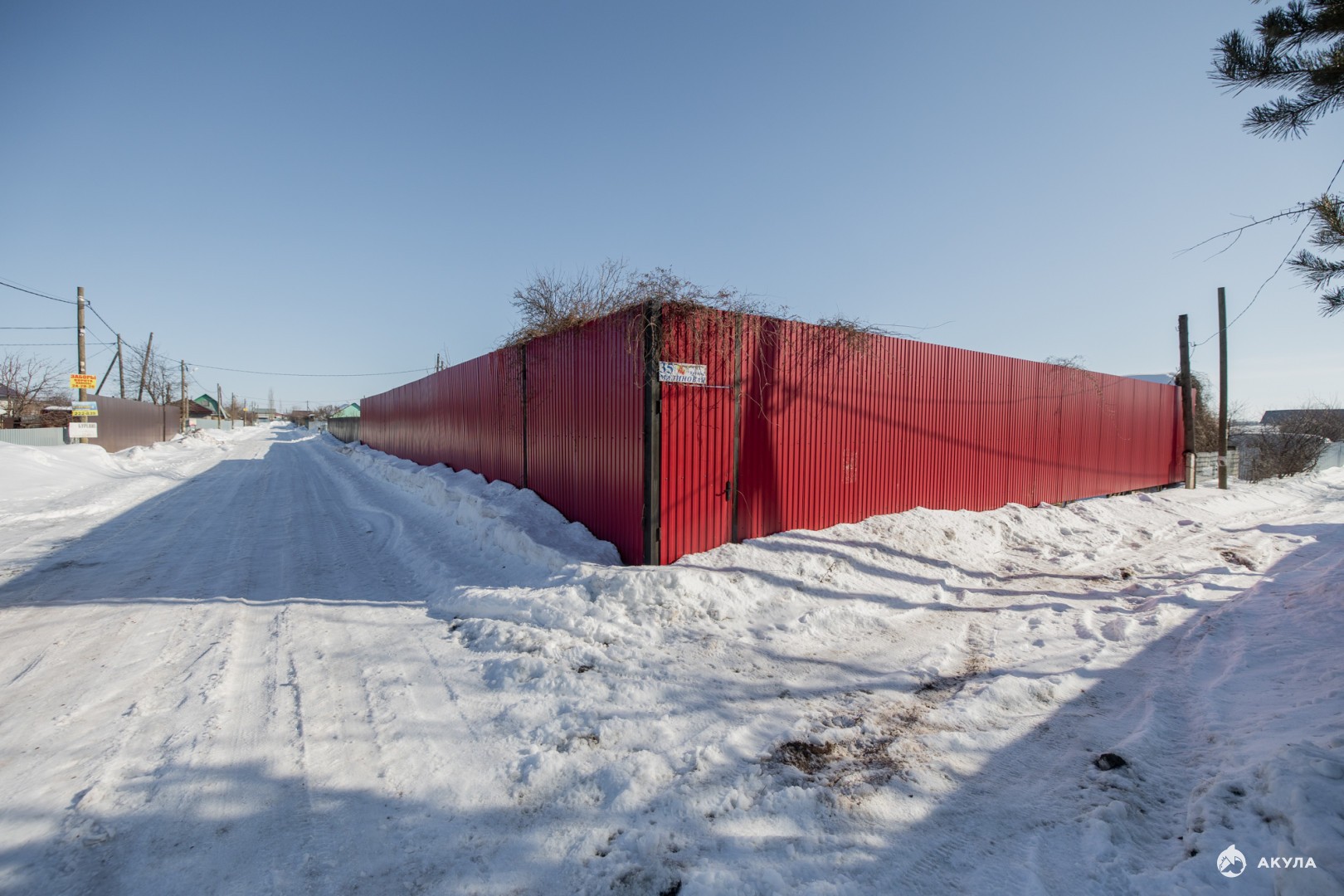 Продается земельный участок правильной формы. По периметру капитальный, высокий забор, участок угловой, что обеспечивает удобную парковку.