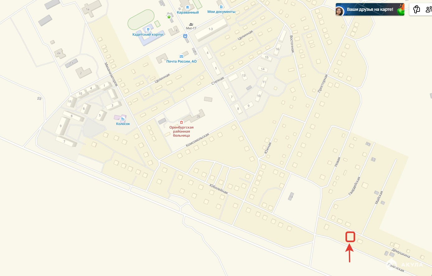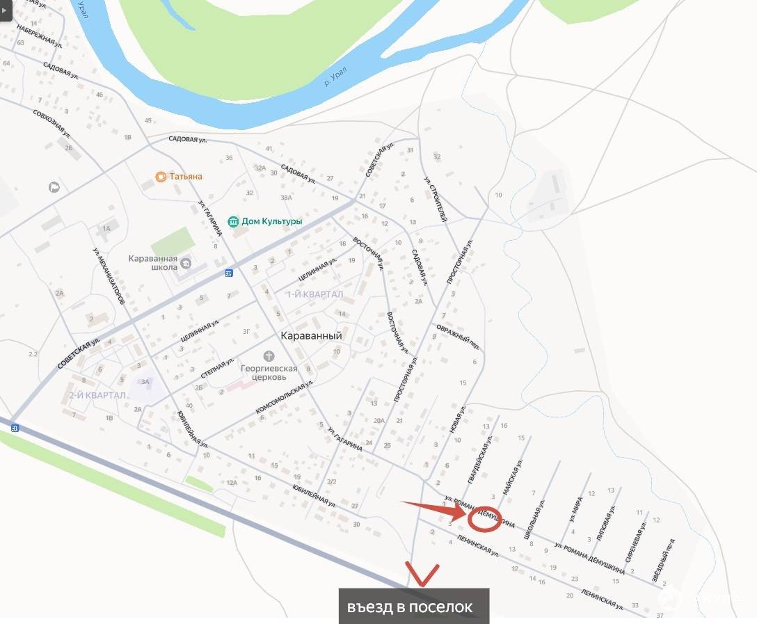Второй въезд в поселок недалеко от ул. Демушкина (схема также есть на фото).