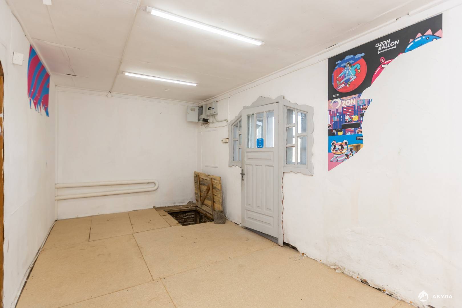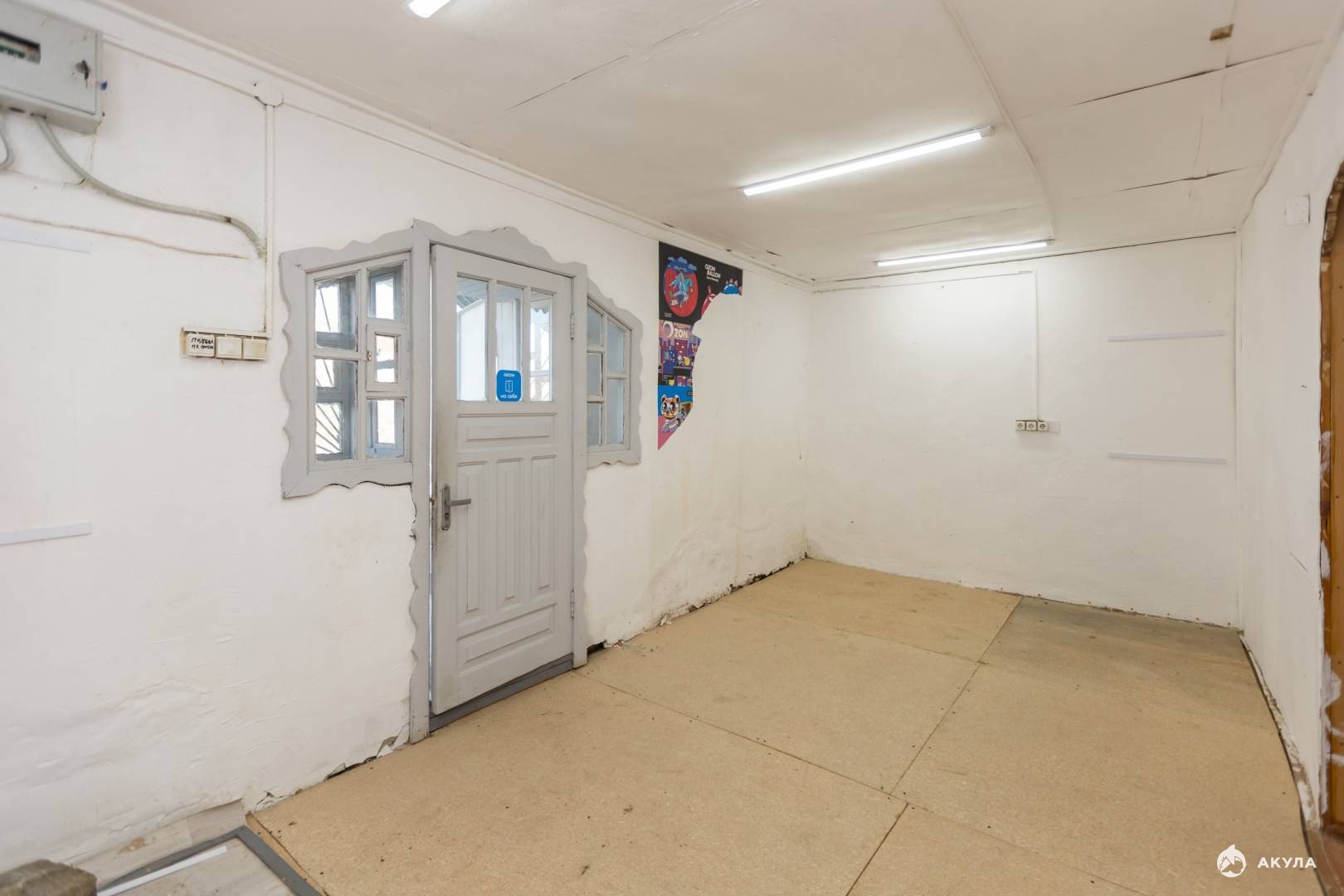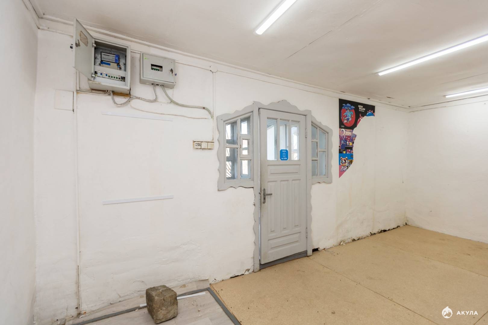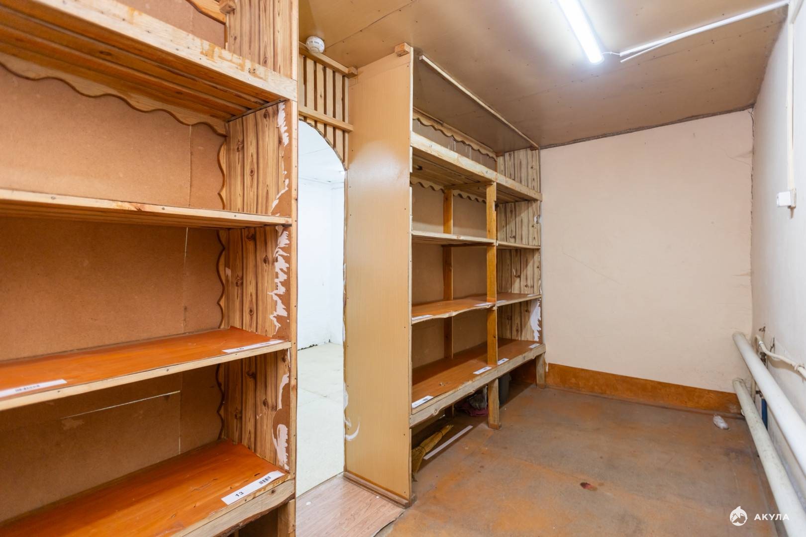 Объект состоит из двух помещений. В первом находятся 2 комнаты, одна из которых котельная со своим газовым котлом. Вторая комната оборудована прилавками под магазин. Входная дверь металлическая.
