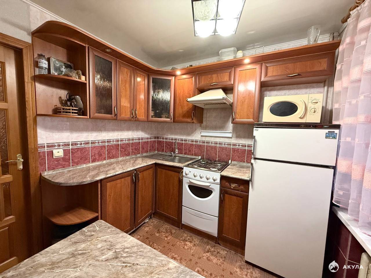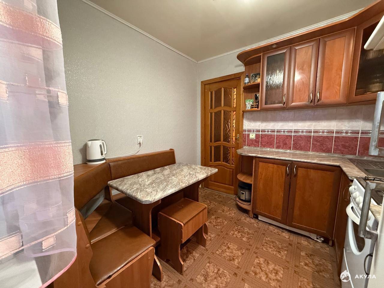 Просторная кухня. Аккуратная плитка в санузле. Всё очень чисто и опрятно!
