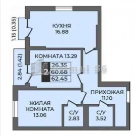 Арт. 59073108. ПРОДАЖА КВАРТИРЫ НАПРЯМУЮ ОТ ЗАСТРОЙЩИКА!! СДАЧА НОЯБРЬ 2026 Общая площадь квартиры 61, 42 кв.м. Жилая 29 кв.м. Кухня 15, 4 кв.м. Квартира в одном из быстроразвивающемся районе нашего города. Во дворе есть все необходимое для вашего комфортного проживания (детские и...