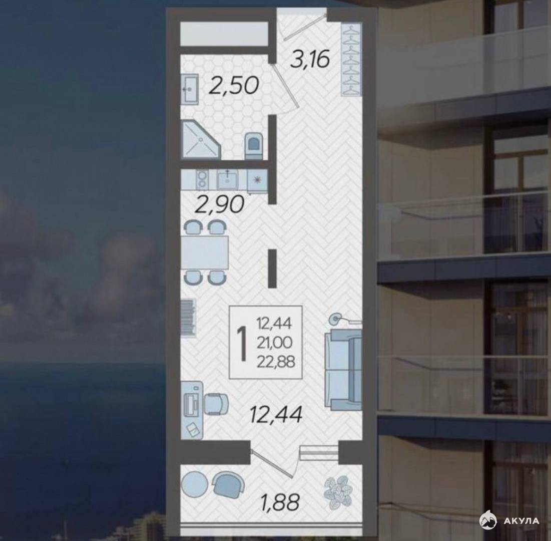 - 12.44 м²