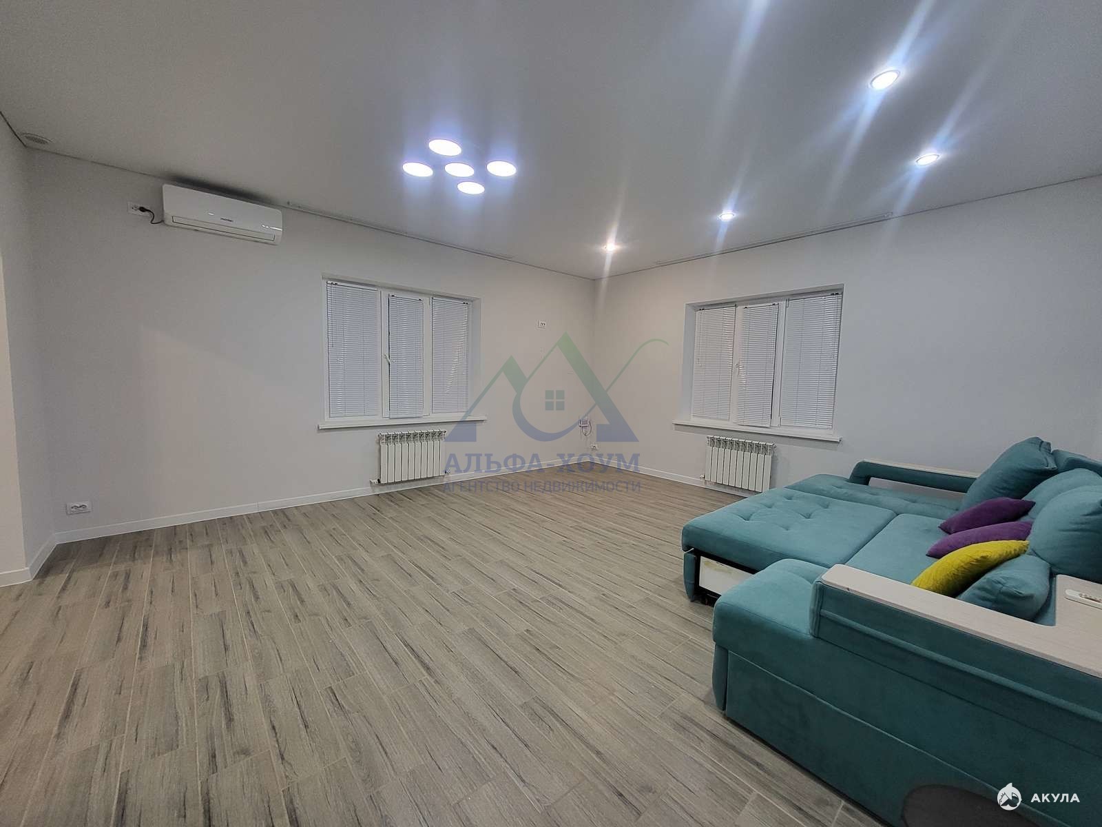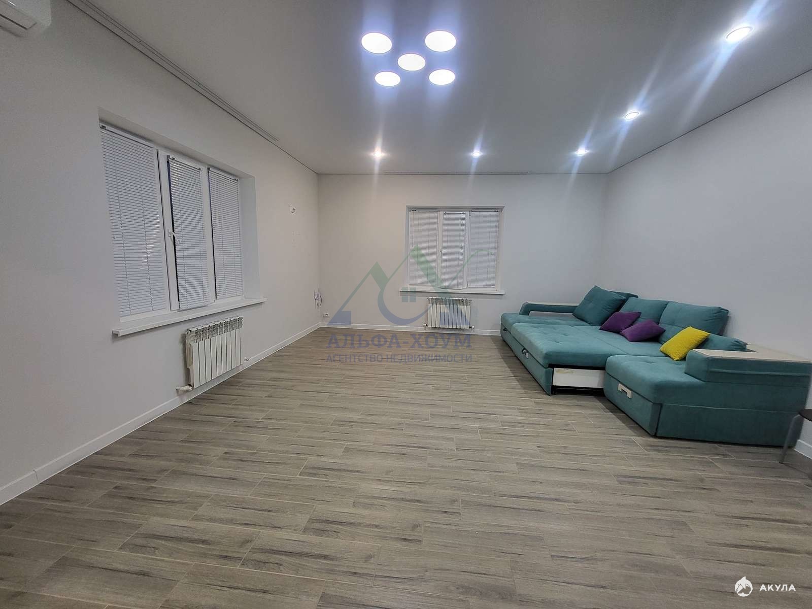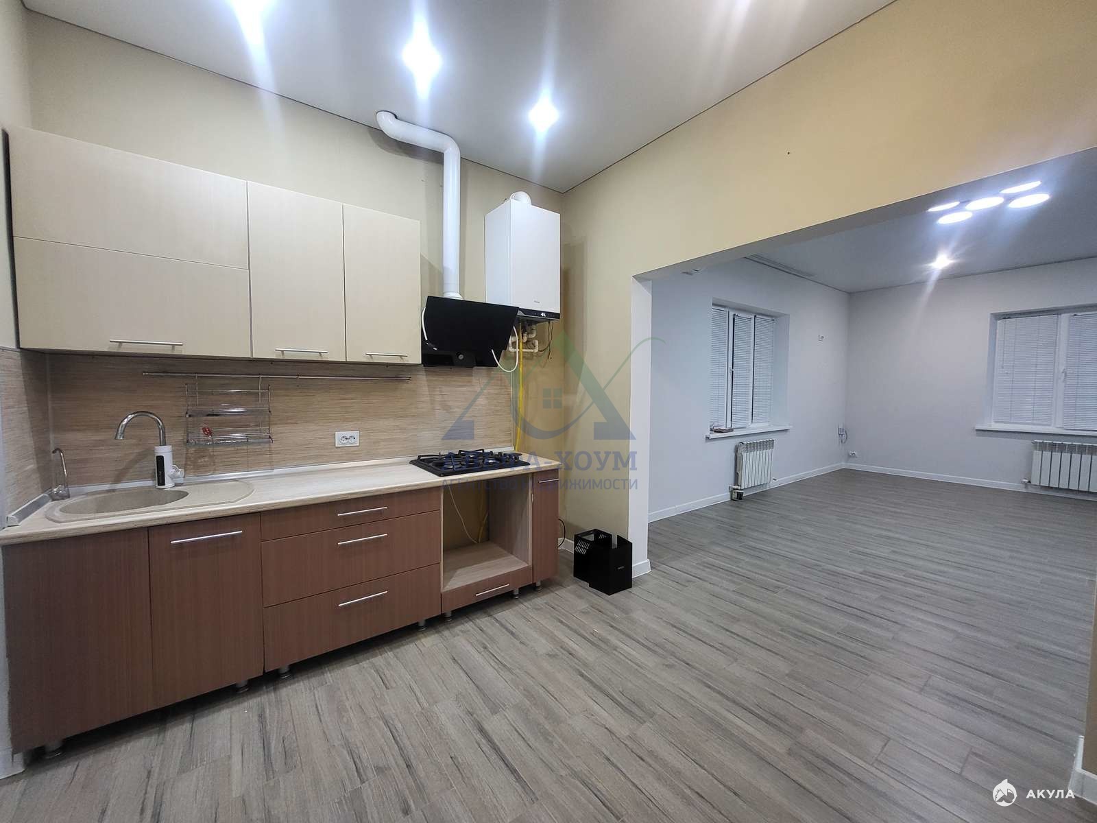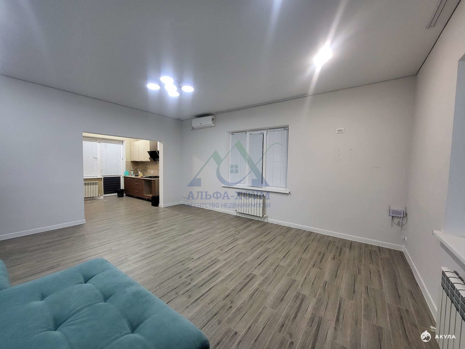 - Внутренняя планировка включает: две просторные спальни, большую гостиную, кухню и удобный совмещённый санузел