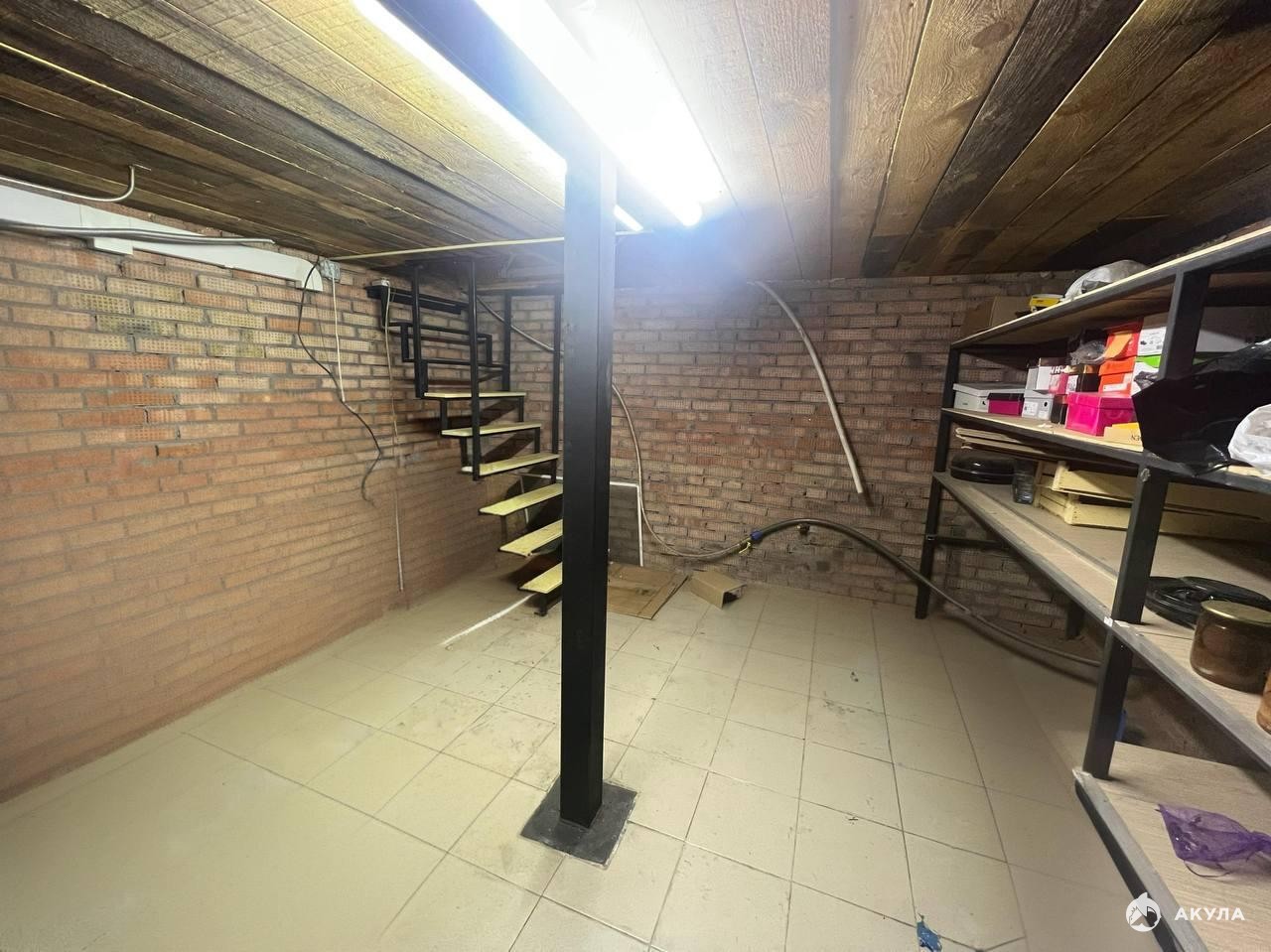 Подвал площадью 16 кв. м выложен кирпичом и напольной плиткой, оборудован стеллажами и системой принудительной и приточно-вытяжной вентиляции.