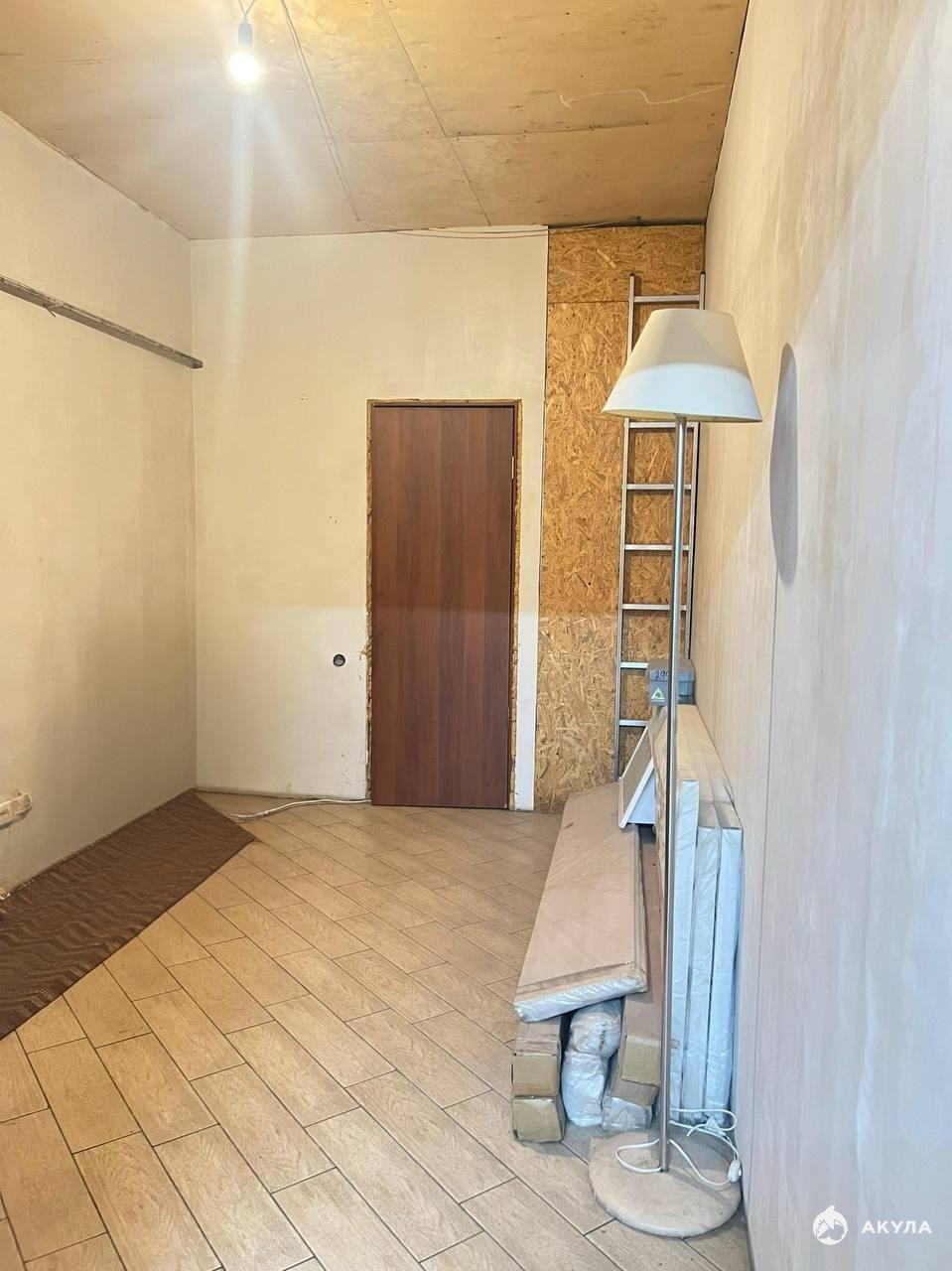 Второй этаж пока не доделан, но уже подготовлены все условия для внутренней отделки: установлены направляющие, есть свет и отопление. Также имеются мансардное и панорамное открывающееся окно в пол — через него можно выйти на крышу гаража, где планировалось обустроить террасу. На крыше есть два технических помещения.