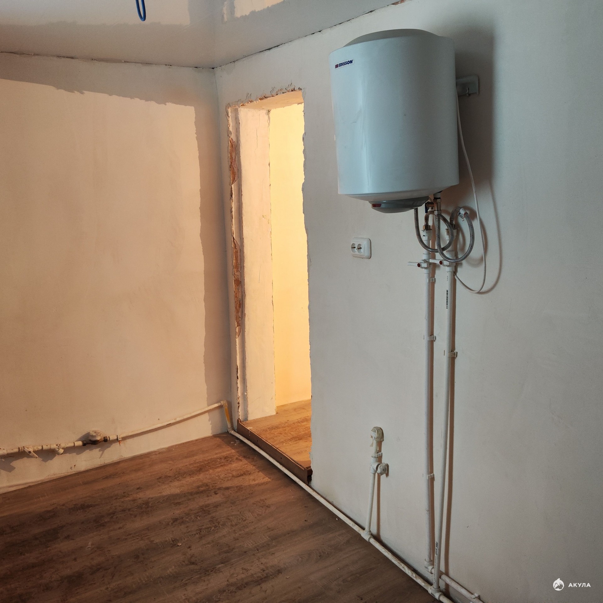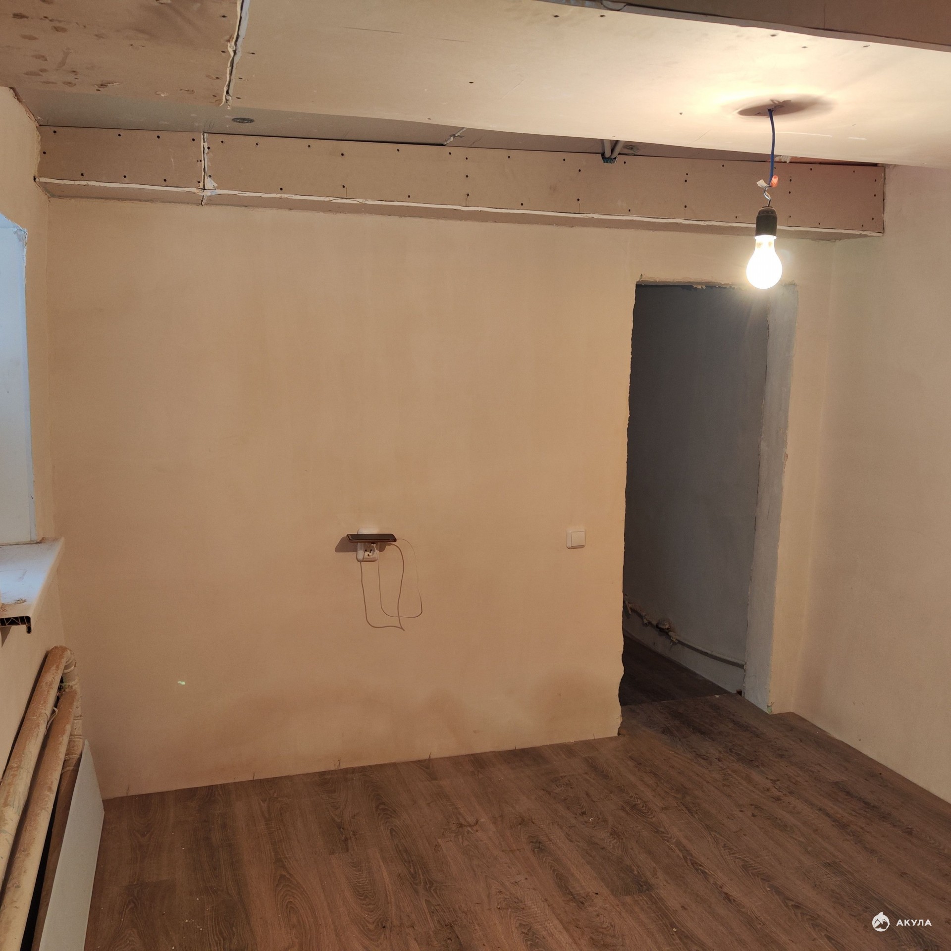 Состояние: На полу уложен ламинат, выполнена шумоизоляция потолка. Санузел совмещённый (душ) — новый.