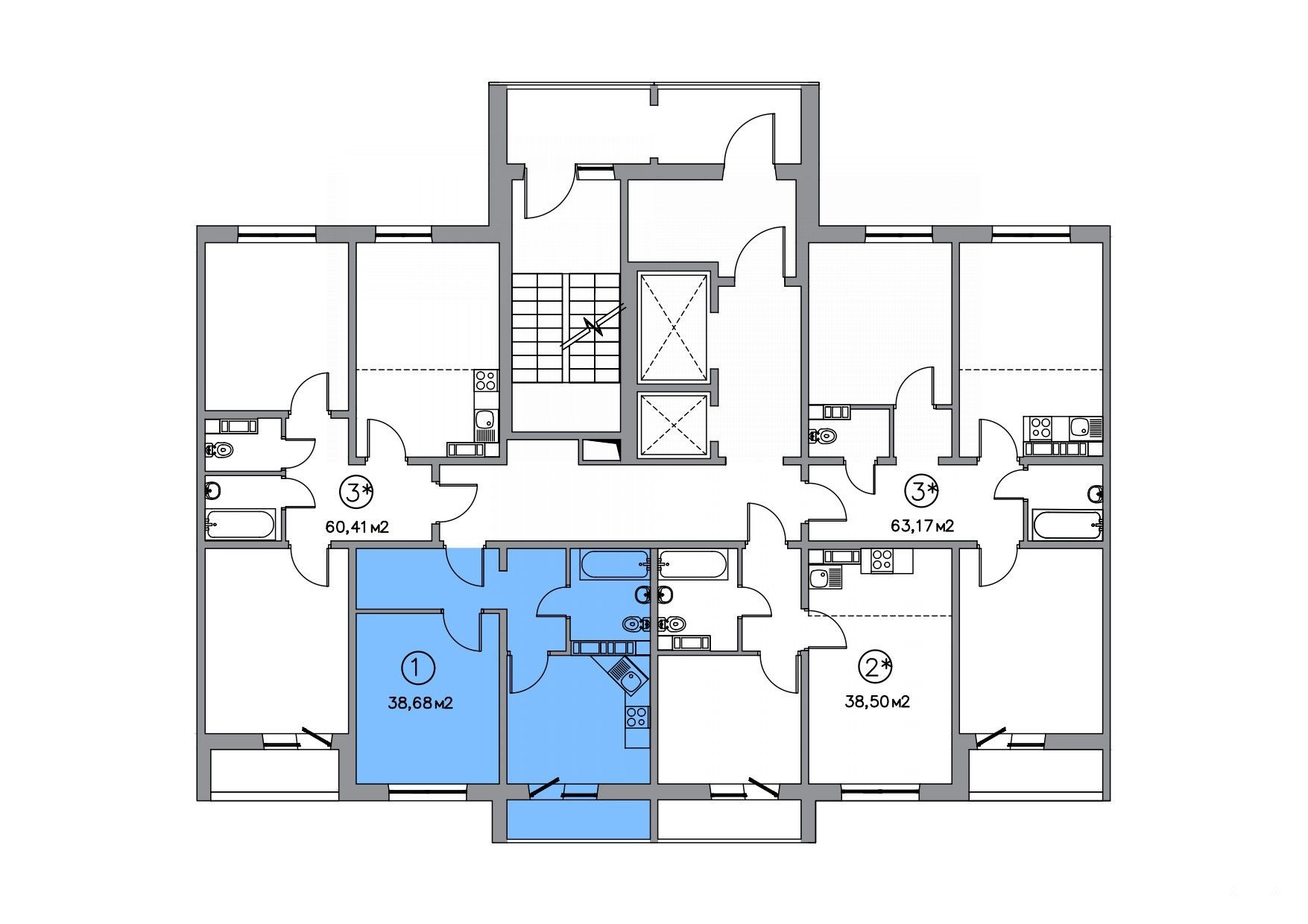 ✅ B продаже 1комнатная квартира, S - 38, 68 кв.м.