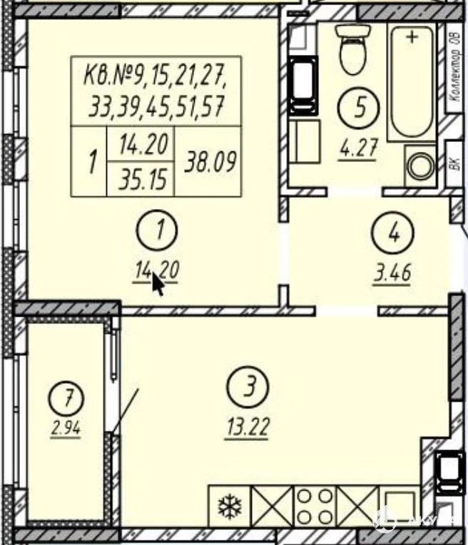 - 38 м²