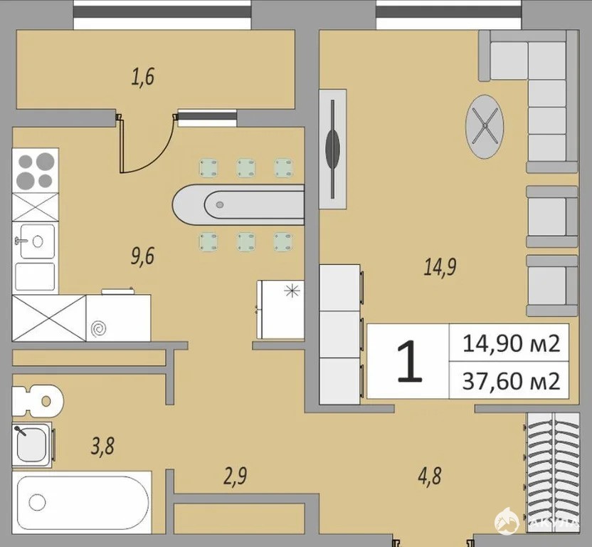 - 14.9 м²