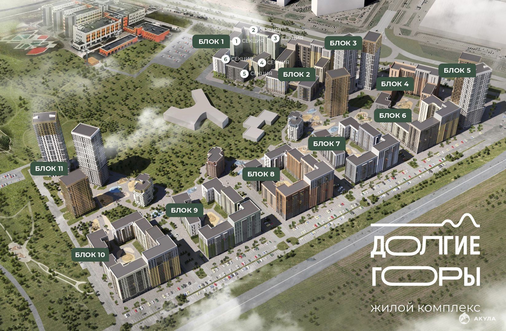 �� ЖК «Долгие горы» -это 30-ть домов переменной этажностью. Комплекс представляет очень интересную, необычную для Оренбурга архитектурную концепцию проекта, разработанную шведским и Санкт-Петербургским архитектурными бюро.