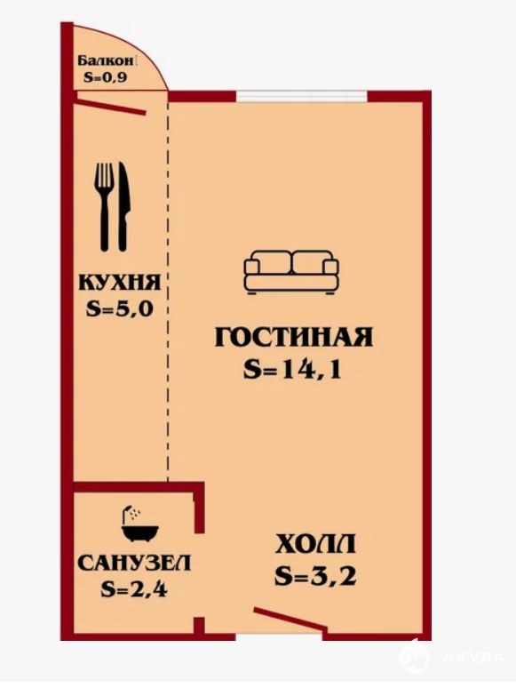 - Площадь кухни