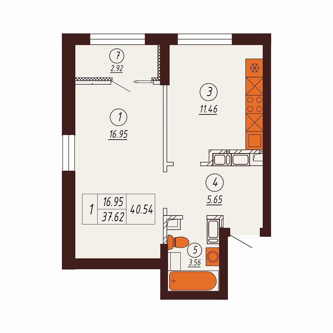 Просторные 40 м² — идеальная планировка для семьи.