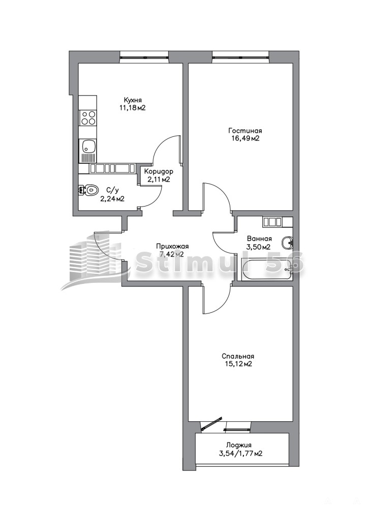 Квартира площадью 59, 85 кв.м. Жилая 31, 6 кв.м. Кухня 11, 2 кв.м.