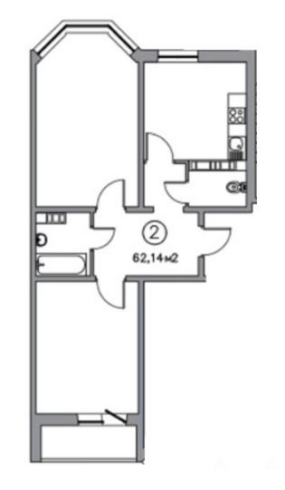 ✅ B продаже двухкомнатная квартира, S - 59.83кв.м.