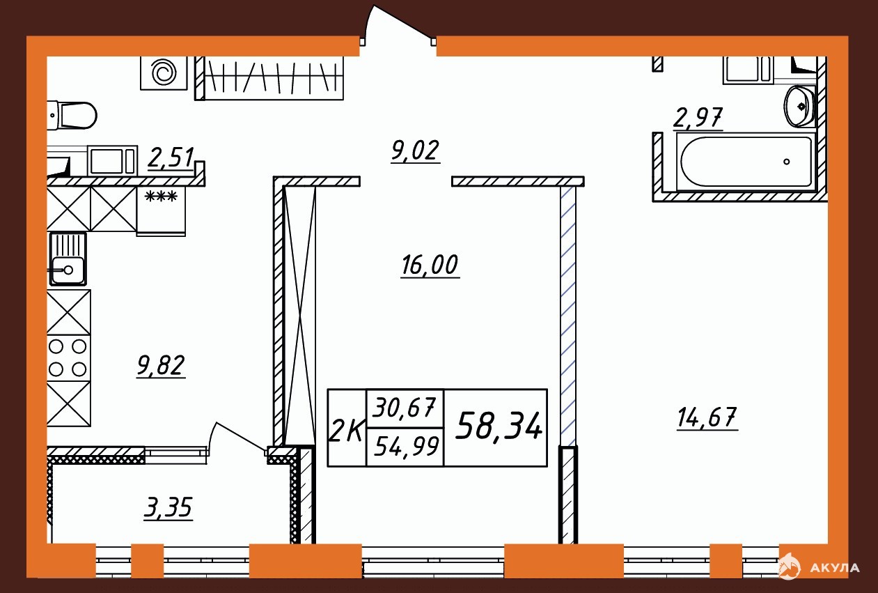 ✅ В продаже 2-комнатная квартира, S - 59 кв.м.