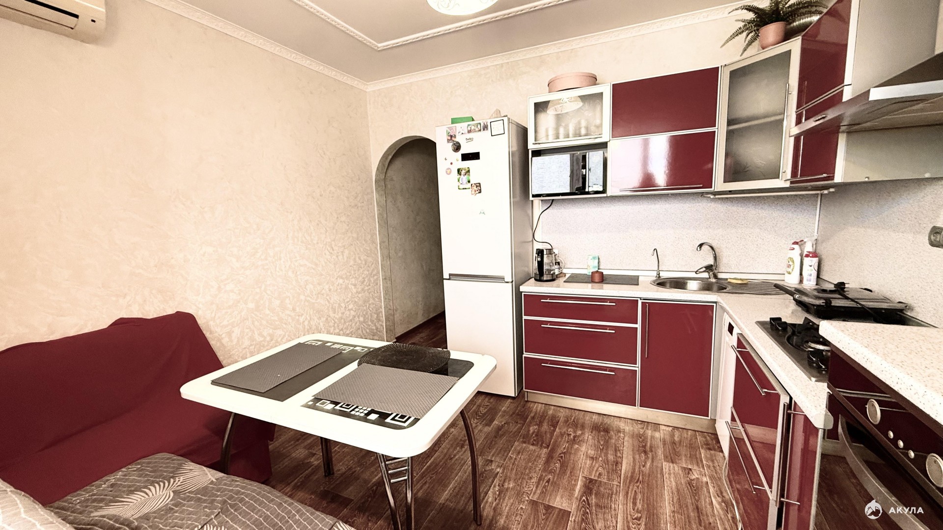 Кухонный гарнитур, стол, стулья и табуреты, диван