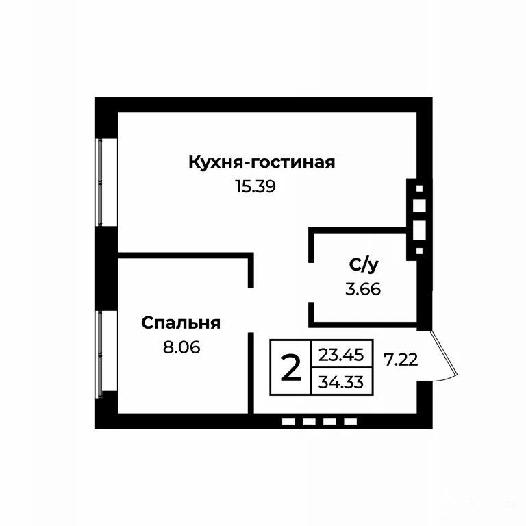 - 34 м²