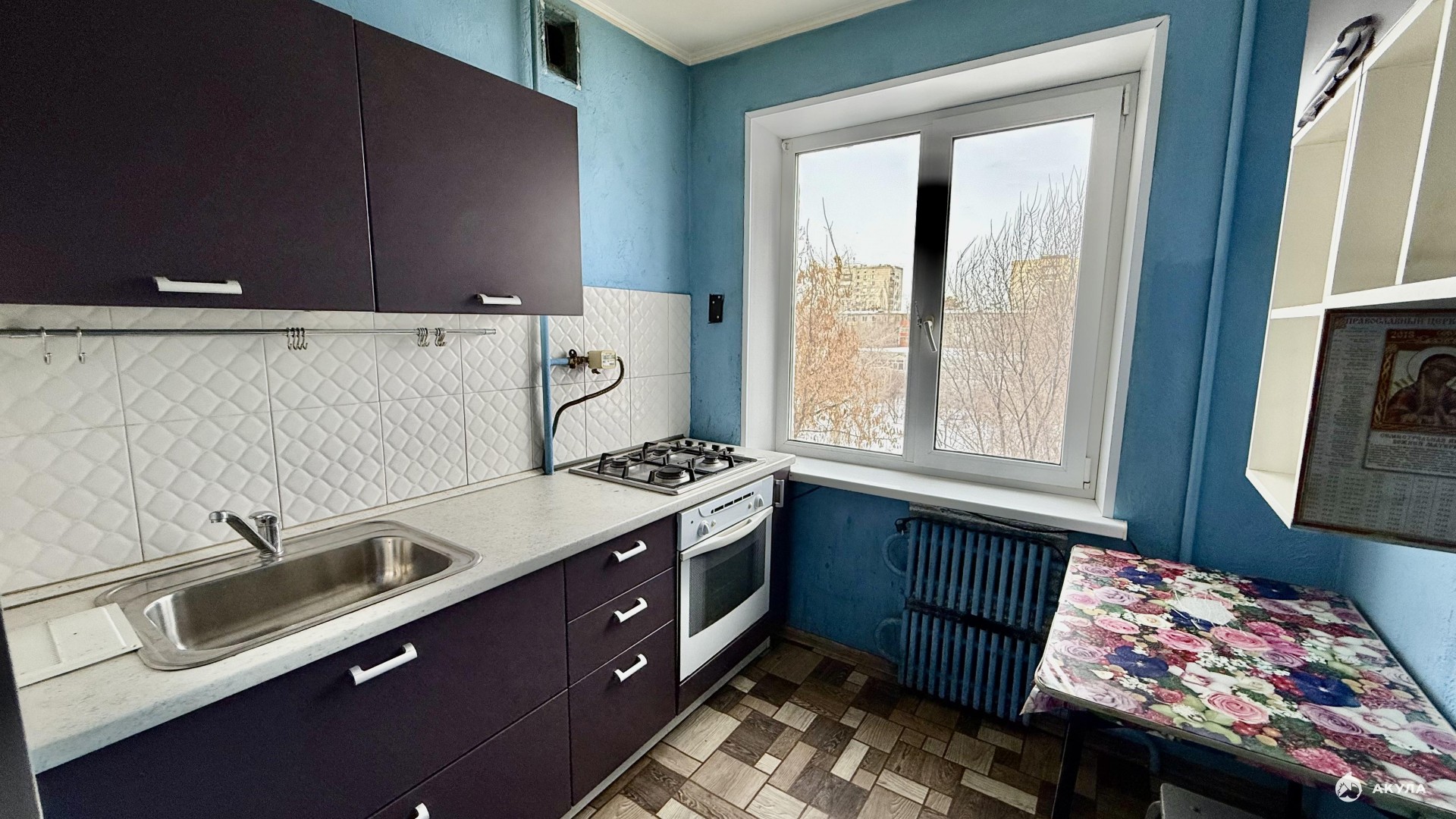 Квартира в панельном доме, окна кухни и двух комнат выходят во двор, окно одной спальни на тихую улицу. Чистый подъезд, хорошие соседи.