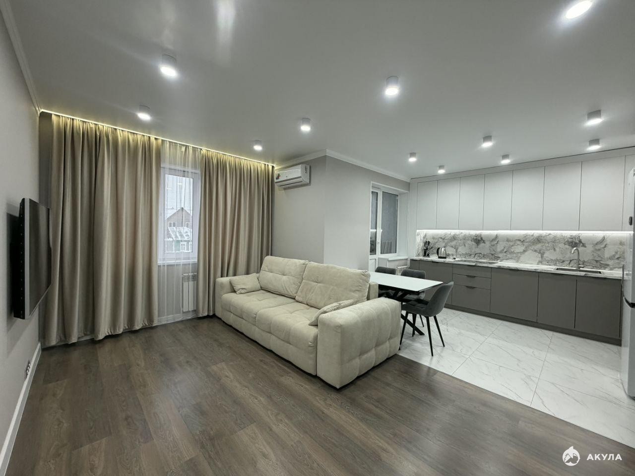 Тихий район. Квартира светлая, уютная. Две большие спальни, просторная кухня-гостиная, совмещённый санузел, две лоджии(выход с кухни и с гостиной).