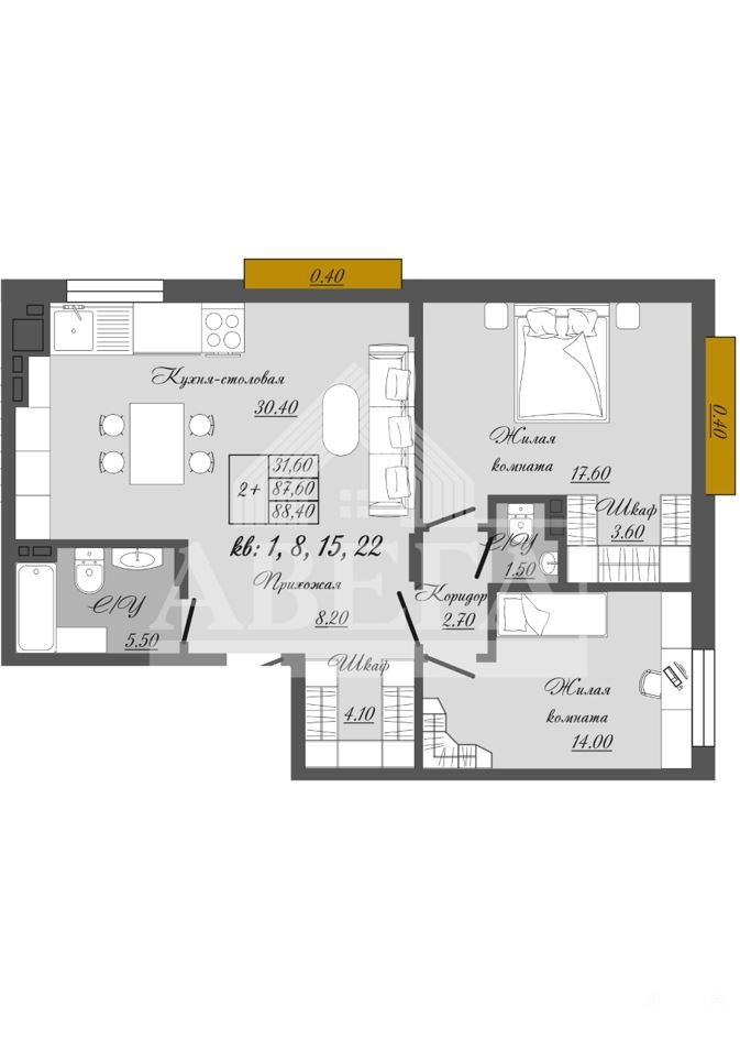 - 88 м²