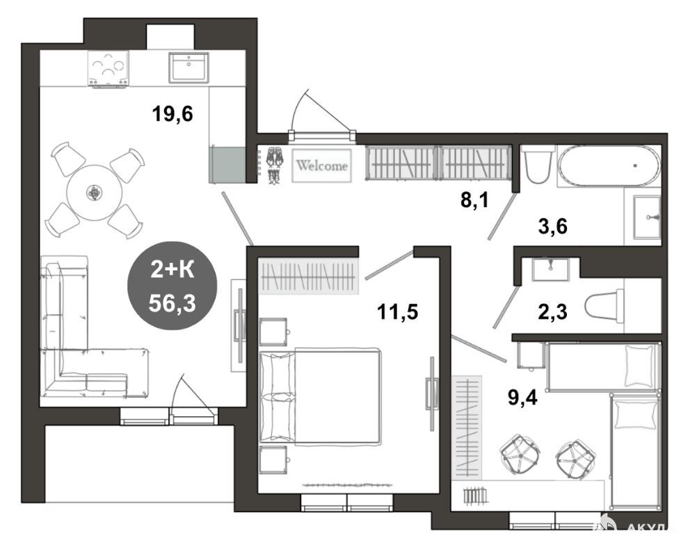 - 56 м²
