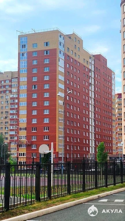 —15 - этажный кирпичный дом с фасадом из облицовочного кирпича (жёлтый и красный), цоколь из керамогранита.