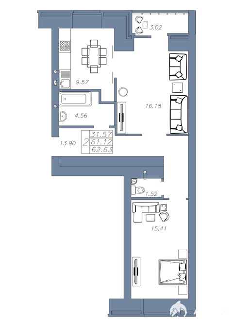 - 62 м²