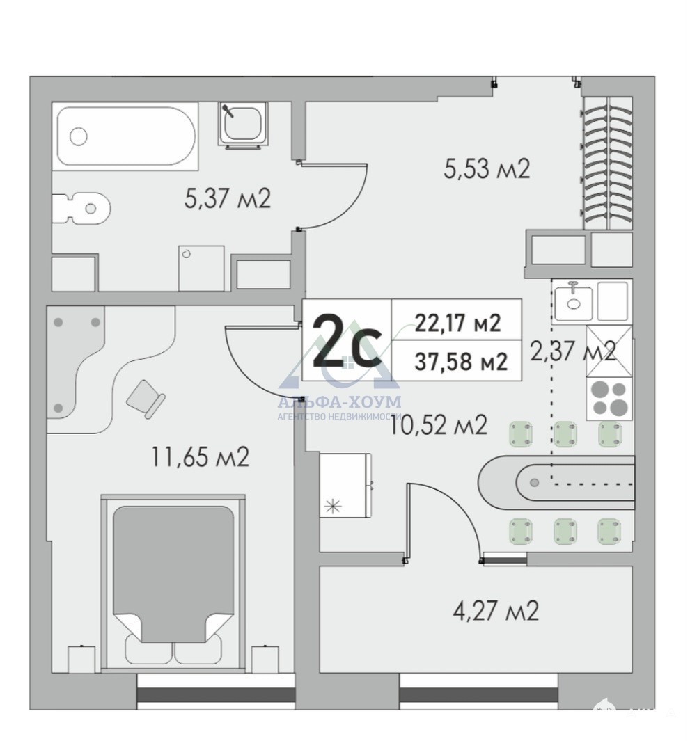 - 22.17 м²