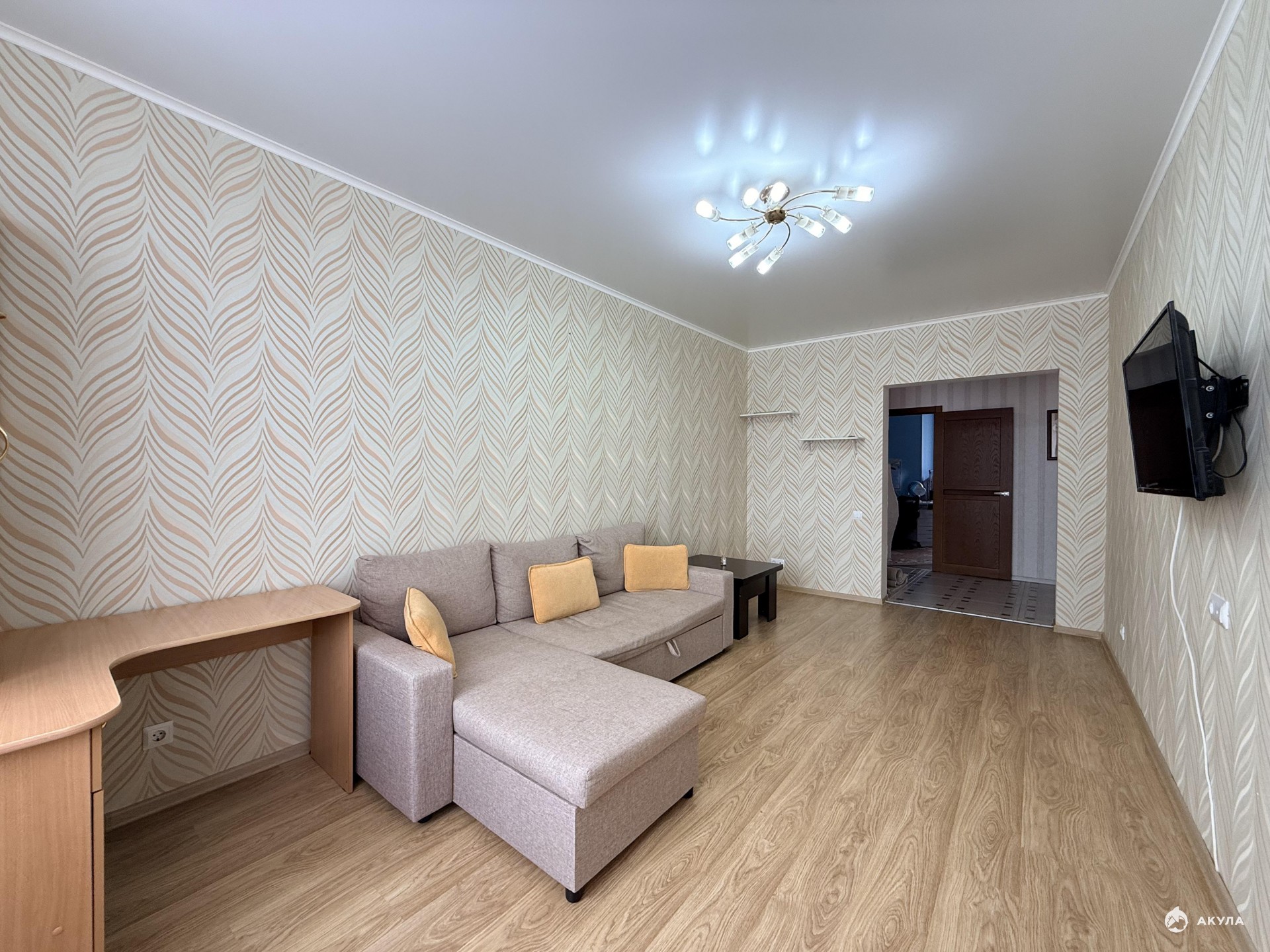 Только представьте: вы заходите в широкий, светлый коридор, где всё дышит чистотой и пространством. Лаконичные натяжные потолки, обои в нежной пастельной гамме и практичная плитка на полу — база, которая всегда актуальна.