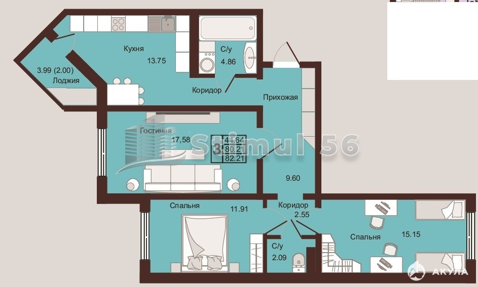 - 82 м²