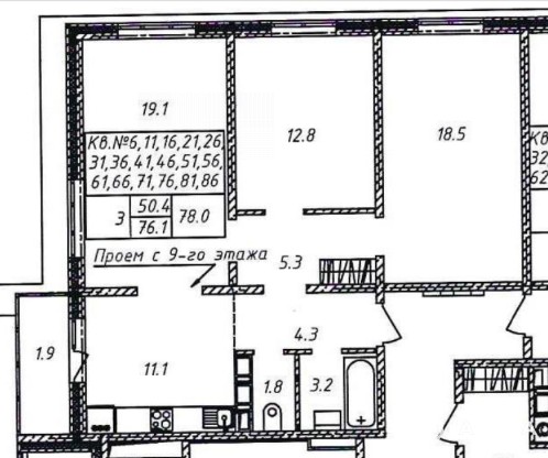 • Площадь: 78 кв.м (как в заголовке, точность важна), 3 просторные комнаты.