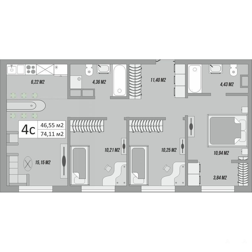 - 74 м²