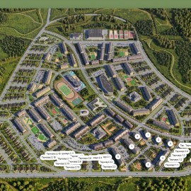Площадь района 75 га. Микрорайон включает в себя 52 кирпичных 4-х этажных дома комфорт и бизнес-класса, 268 дуплексов, а также небольшой район индивидуальной жилой застройки частными домами. Архитектура микрорайона выполнена в современном европейском стиле, где все дома...