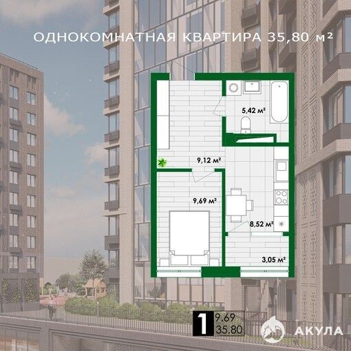 ЖК "Европа-Азия" – просторная квартира - 1-к 35 м² для комфортной жизни!
