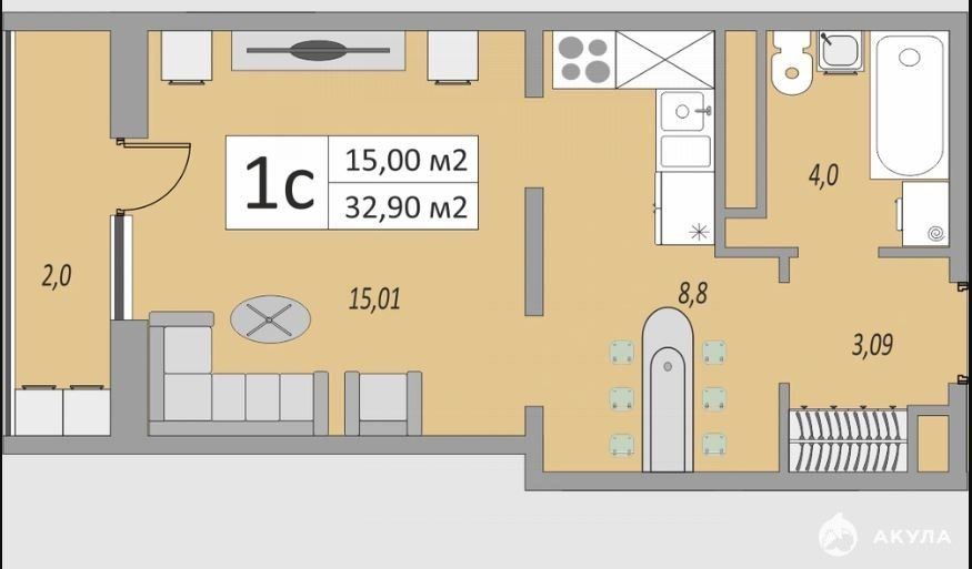 ✅ В продаже 1комнатная квартира, S - 32 кв.м., по цене студии!!! Дом сдан!
