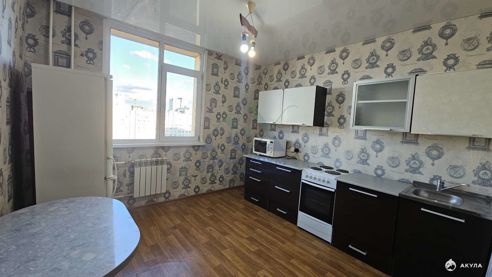 В квартире имеется: кухонный гарнитур; плита; микроволновка; шкафы; диван; стол и стулья, холодилтник, стиральная машинка, тв и т.д.
